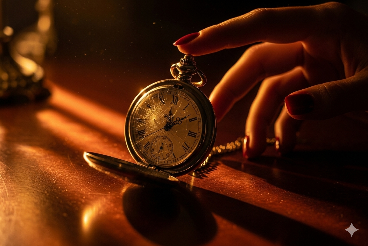 Wanita itu melangkah mendekat, gaun satin hijaunya bergesekan lembut dengan meja kerja Aris, menciptakan suara desir yang mengganggu konsentrasinya. Ia meletakkan sebuah arloji saku perak di atas bantalan beludru hitam. Kacanya retak, seolah ada sesuatu yang dipaksa keluar dari dalamnya.