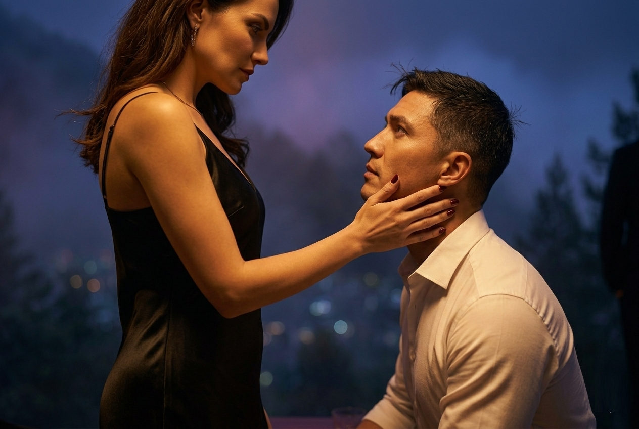 Kata “berlutut” itu menggantung di udara dingin Puncak, lebih berat dari kabut yang menyelimuti balkon. Arya menatap Renata, wanita yang selama ini ia anggap sebagai musuh bisnis, namun kini berdiri di hadapannya sebagai pemegang kendali mutlak.